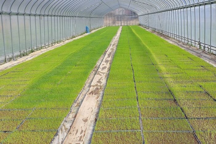 事業(農業)の記録 初回播種分の苗箱が順調に生育