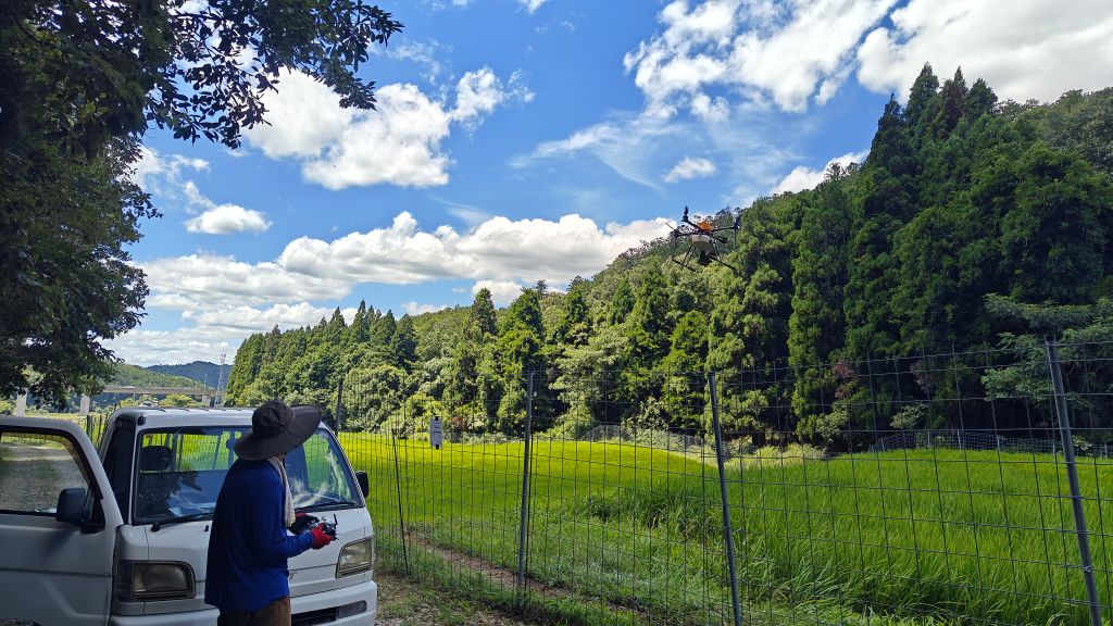 7㎏機は中山間地での使用では、鳥獣柵の間からでも離陸しやすいのですが、肥料を散布するには飛行回数を増えてしまいますので、時間がかかってしまいます。
