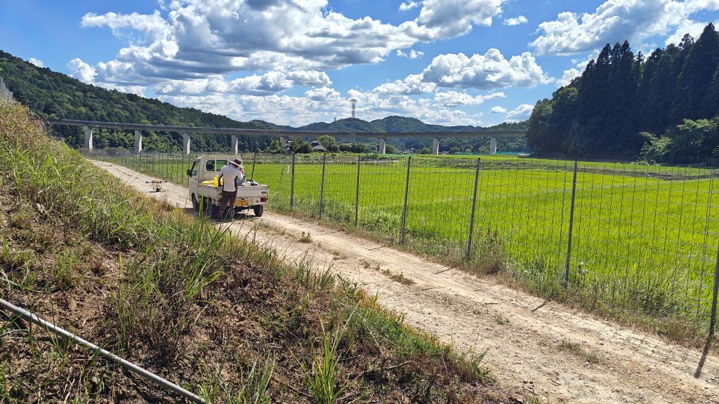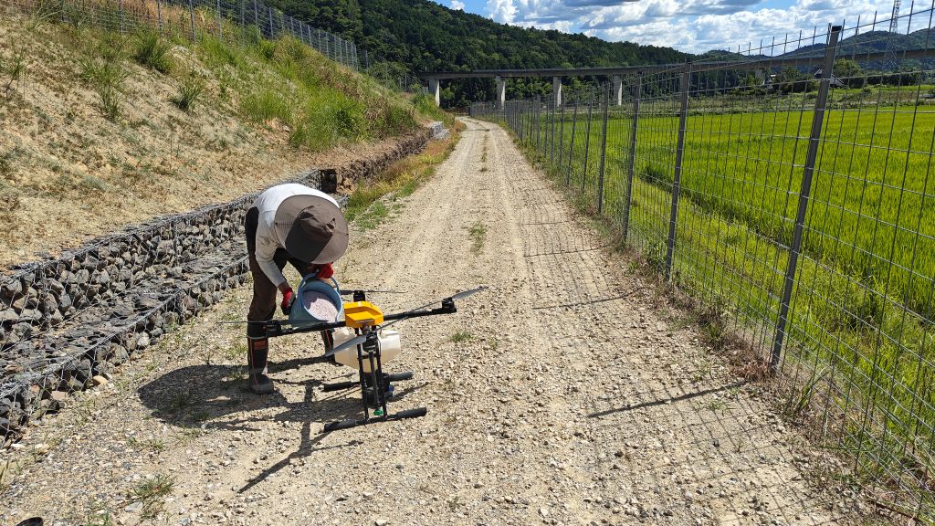 ドローンを使い約2.4haを3.5時間程で散布しました。
